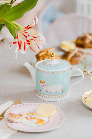 Indulge in the charm of England with Yvonne Ellen’s "Best of British" collection. Classic English animals meet vintage and royal-style gold accents on delightful tableware. From swans on teacups to pigeons on plates, each piece tells a whimsical tale.