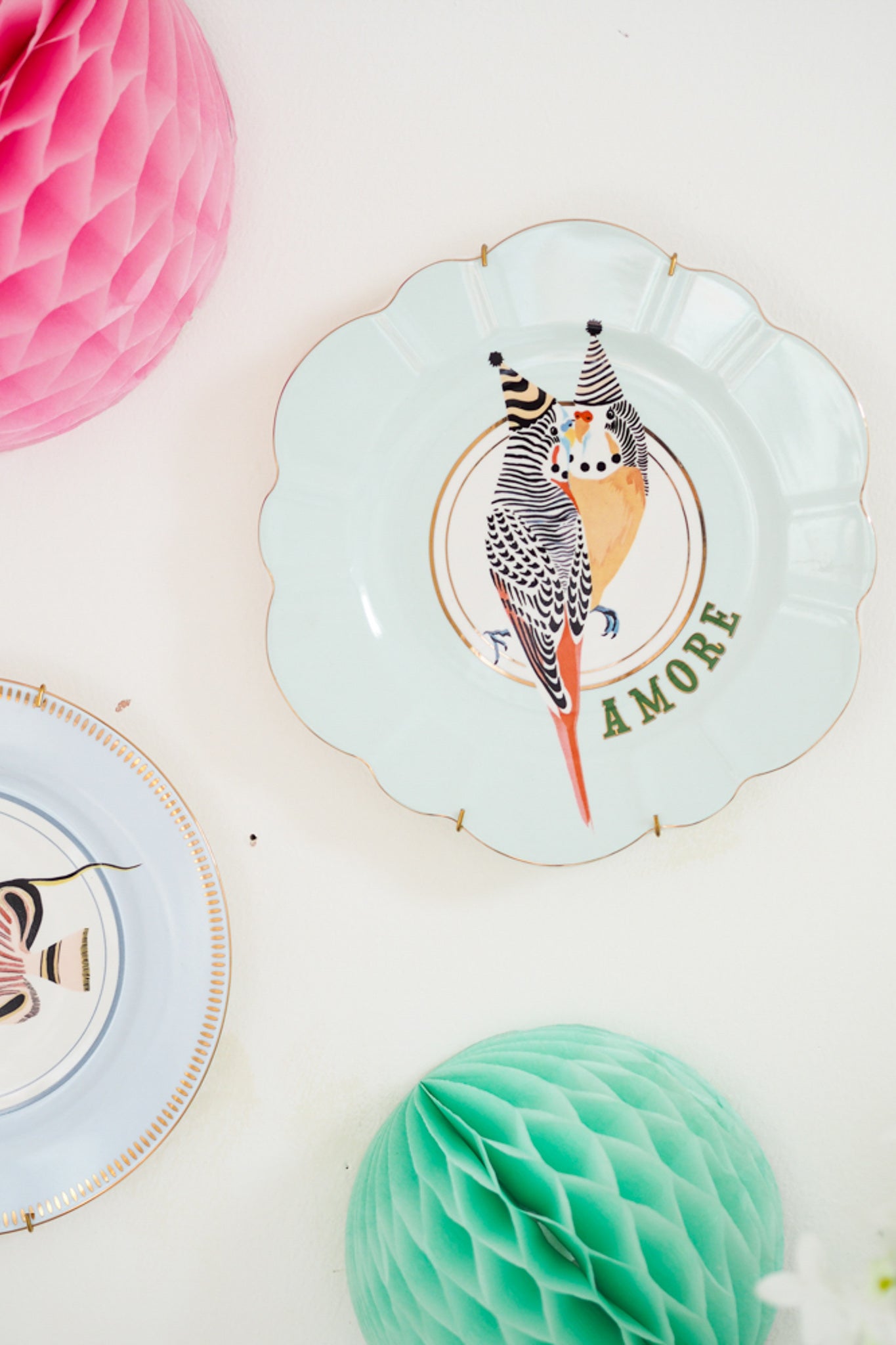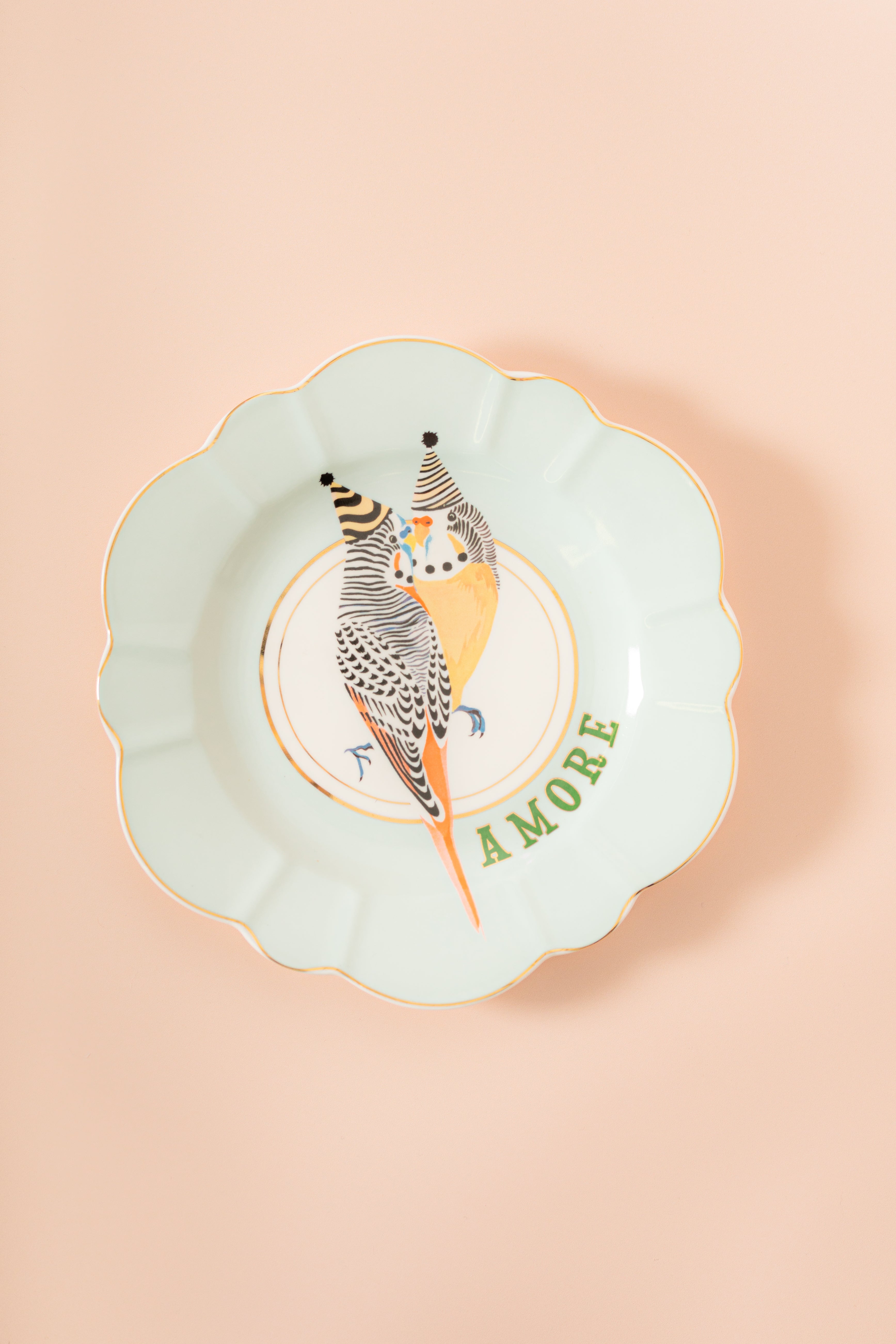 Defo a new favourite plate! Our parrots sit proudly on this vintage style flower plate. The scalloped edge make this plate sure to be the show stopper of your tableware collection! A pastel blue background and gold foiling detail are tied together with a quirky slogan. So unique!