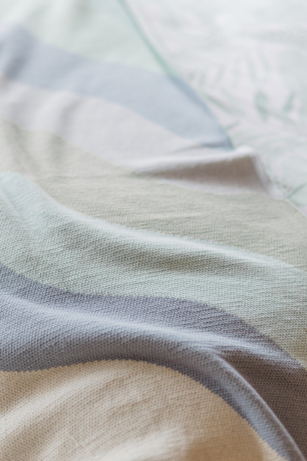 Up the comfort factor in your space with The Yvonne Ellen Signature Stripe Throw – a beautifully bold layer of cosy charm. Knitted from 100% cotton, this soft statement piece features wavy diagonal stripes in a fresh palette of sage, grey and lilac, finished with a contrasting knit border at each end.