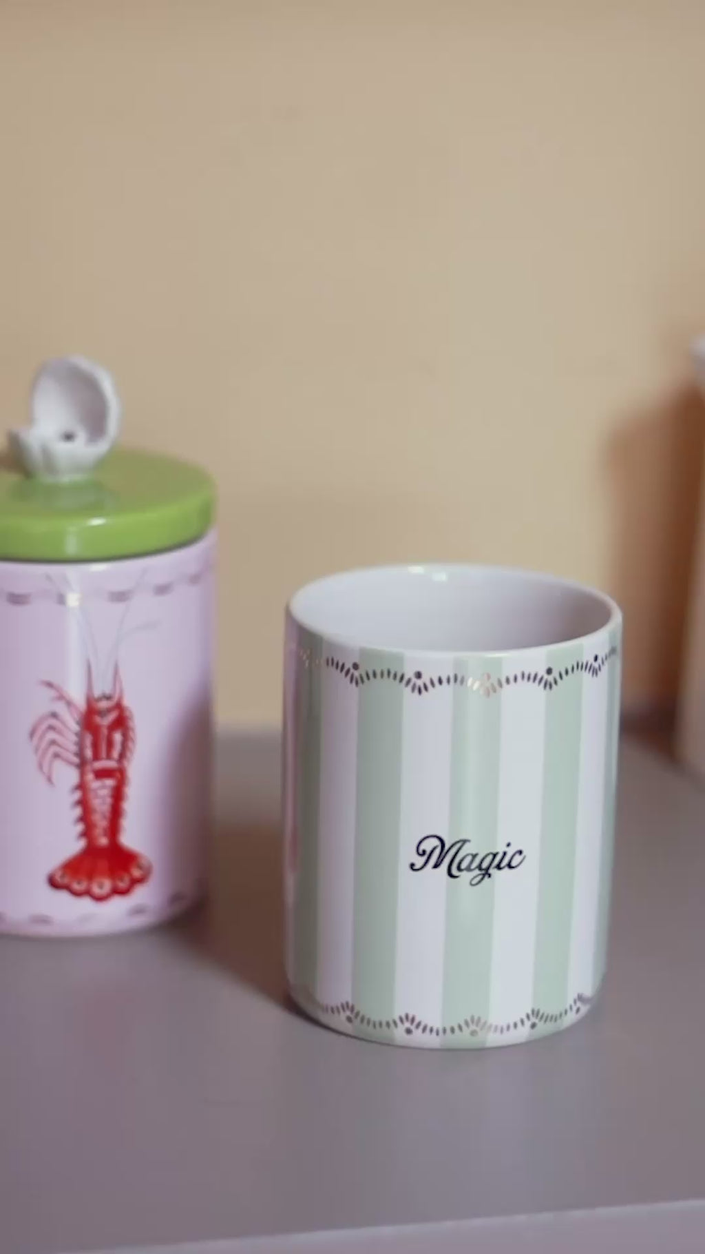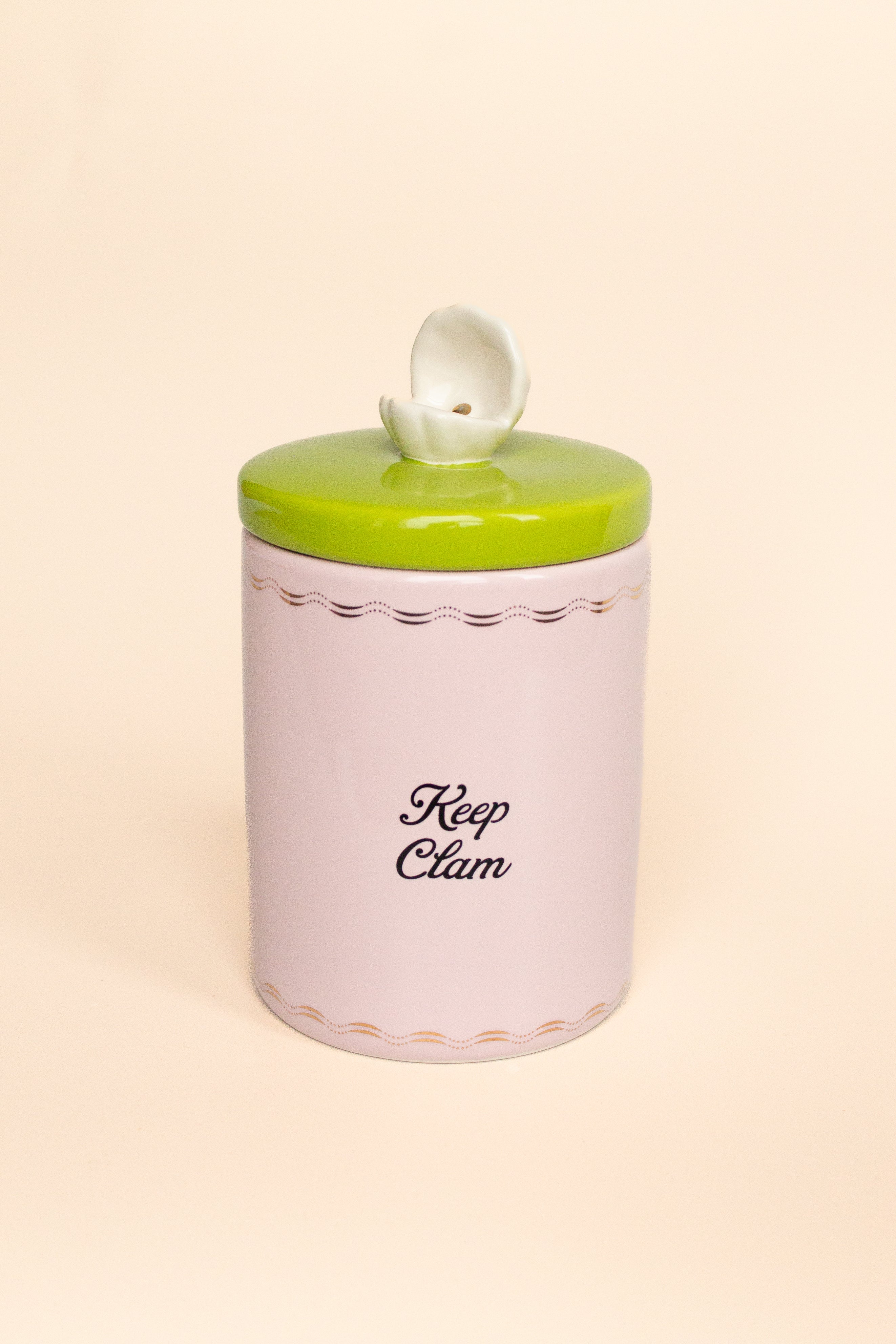 Add a splash of seaside charm to your kitchen with the Medium Lobster Storage Jar. Featuring a beautifully illustrated lobster, keep clam slogan, soft pastel tones and delicate gold detailing, it is finished with a playful shell handle lid for an extra decorative touch.