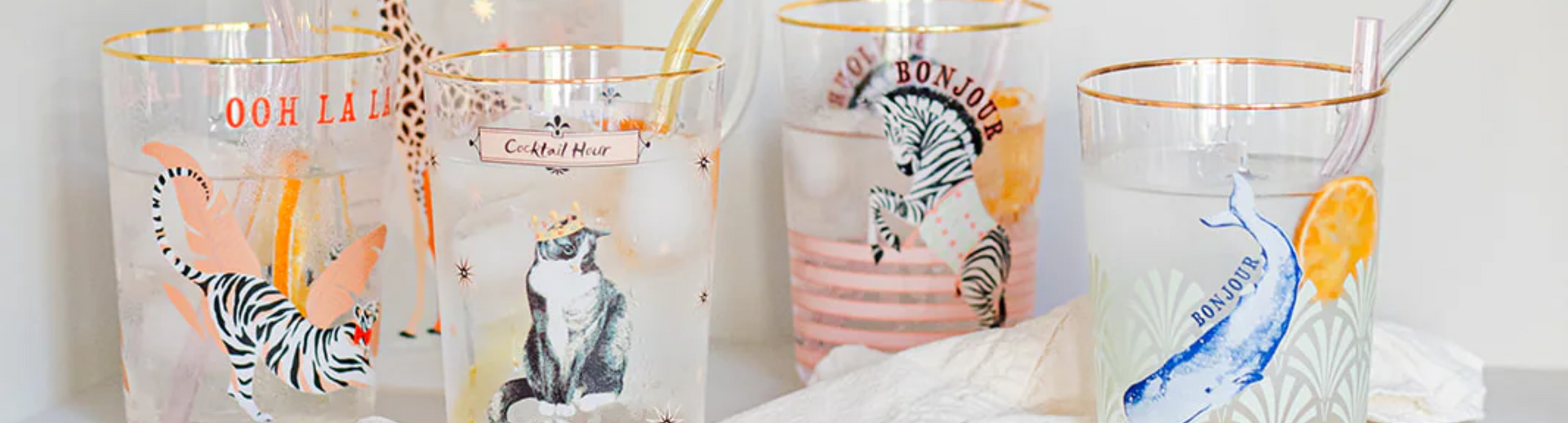Add a touch of glamour to every sip with Yvonne Ellen's glass tumblers. Whether you're serving up juice, fizz or a cheeky cocktail, our highball glasses are designed to turn heads. With vintage-inspired shapes, quirky printed details and a glimmer of gold, they bring instant style to your table - perfect for toasting life’s little moments. Need an unbreakable option? Our plastic reusable picnic glasses have you covered!