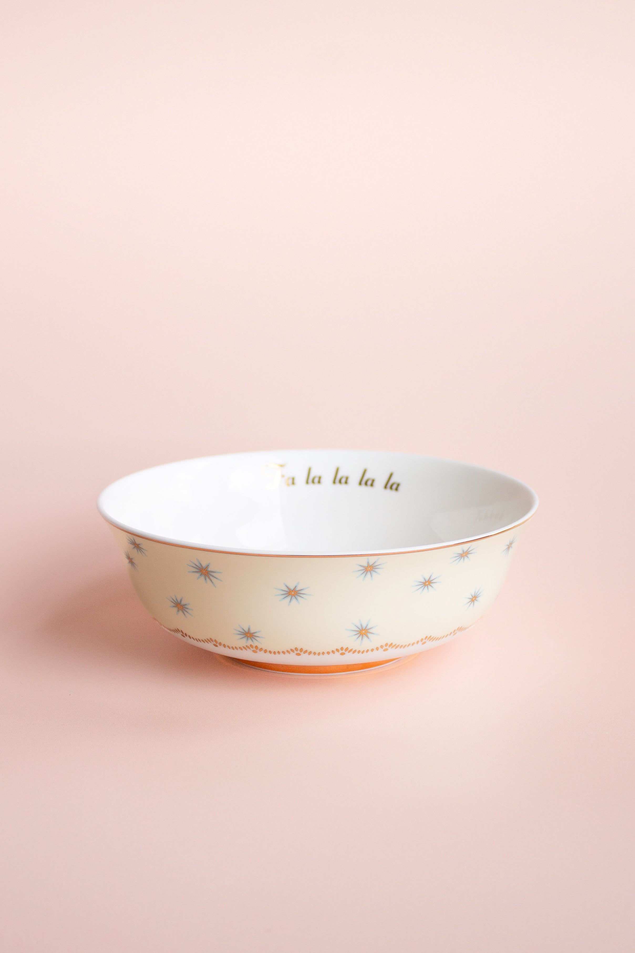 Add a touch of festive charm to your table with our China Serving Bowl. Adorned with an adorable squirrel illustration and highlighted by "Fa La La La La" gold detailing, this bowl is perfect for holiday gatherings and everyday use. Crafted from high-quality china, it combines durability with elegance, making it a delightful centrepiece for your culinary creations. Serve up style and joy with this cute serving bowl.